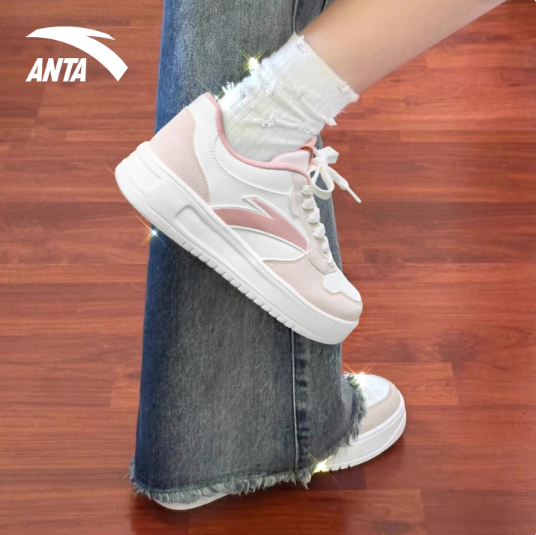 安踏(ANTA)女鞋运动板鞋【女神节】春季新款厚底透气低帮小白鞋增高学生鞋子 【店长推荐】丁香粉【正品保证-假一赔十】